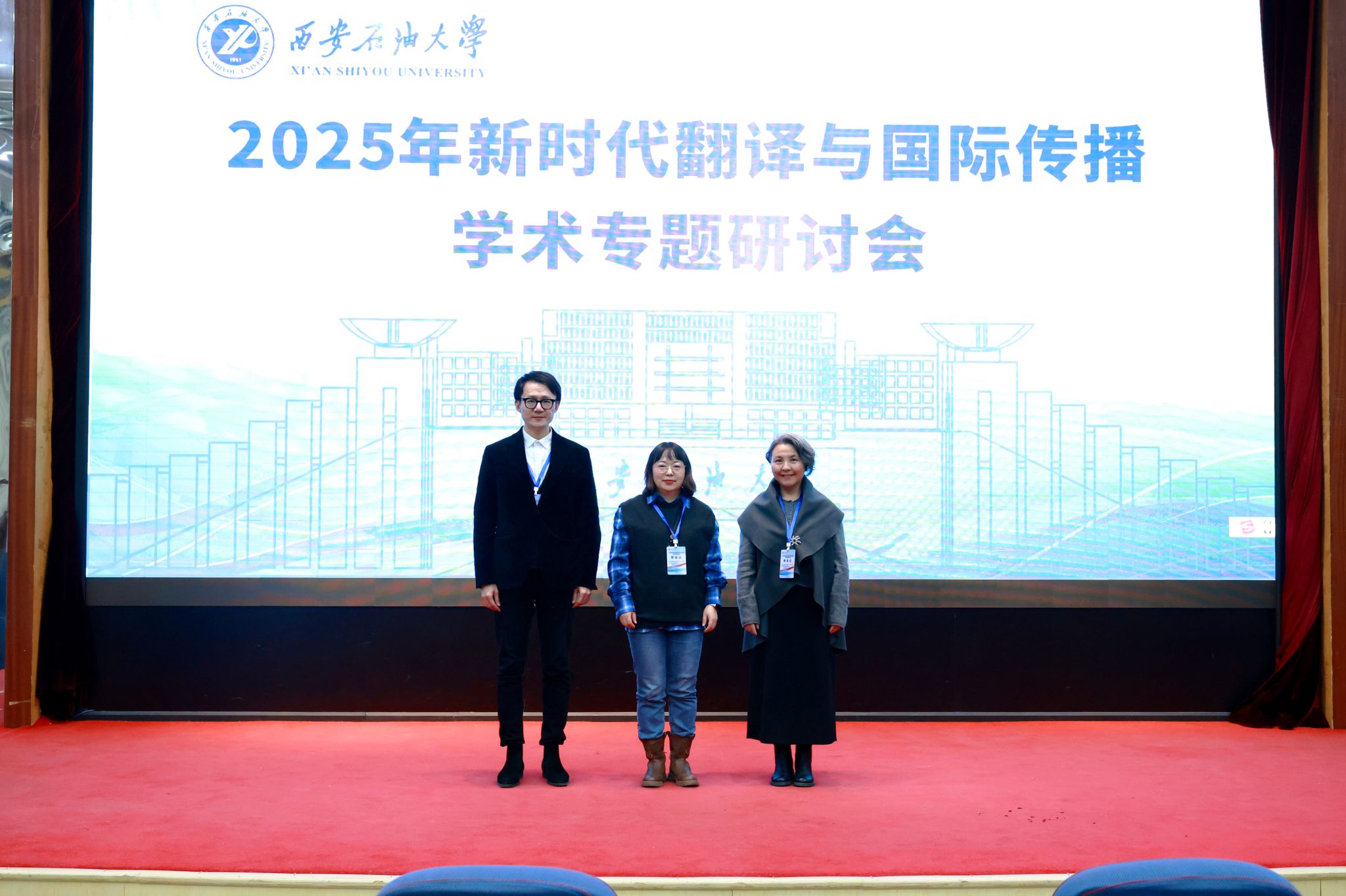 近日,2025年新时代翻译与国际传播学术专题研讨会在西安石油大学隆重举办。来自全国66所高校的150余名外语学科、翻译与国际传播领域的知名专家学者齐聚古城西安,聚焦学科前沿议题,展开深度交流研讨,共话新时代翻译与国际传播事业发展新路径。国际语言文化学院孙婷婷副院长、李思红老师和张开植博士三位老师代表学院参加了此次会议。