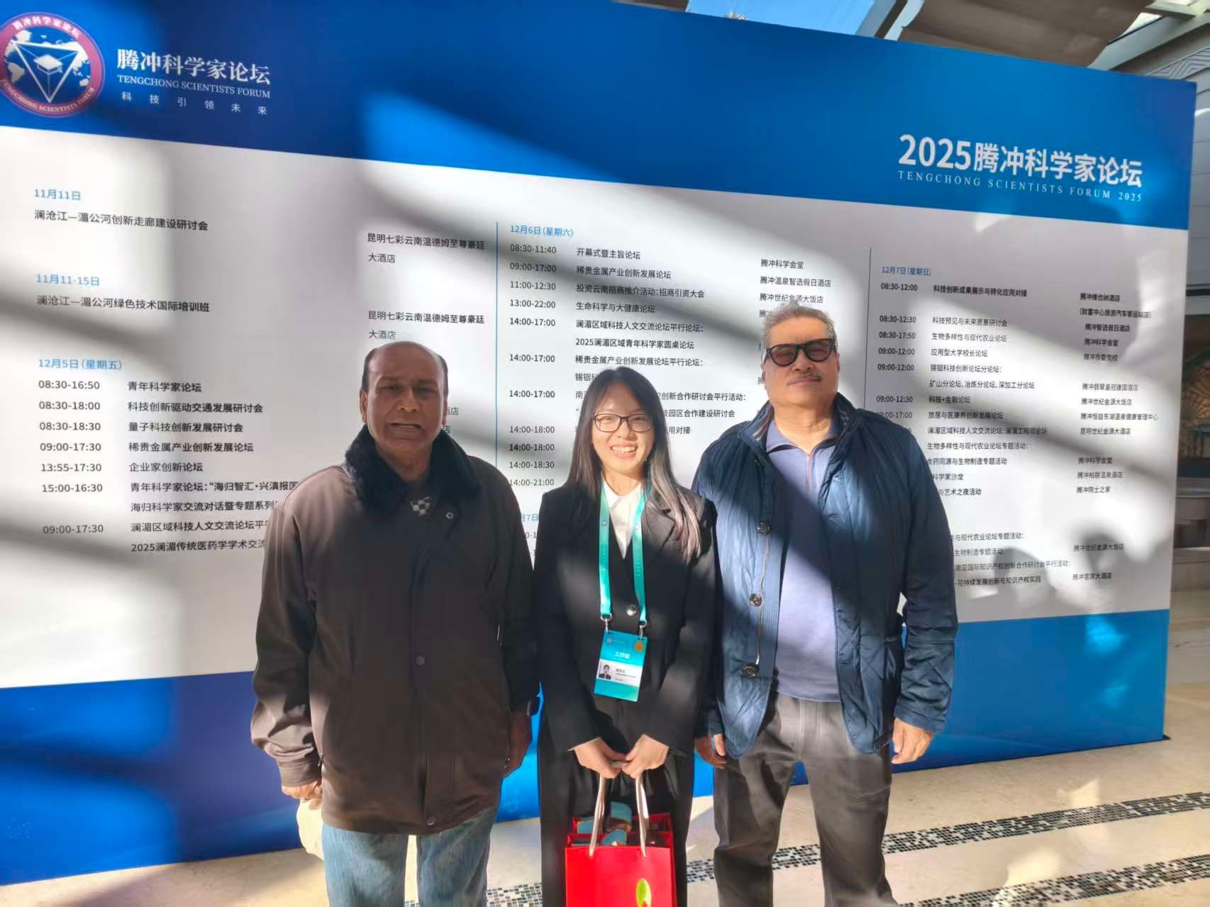 2025年12月5日至7日,由云南省人民政府与中国科学技术协会共同主办的2025腾冲科学家论坛在腾冲举行。作为汇聚百余位中外院士、数百名学者与产业领袖的国际性高端科技盛会,论坛致力于打造面向南亚东南亚的科技创新合作平台。我院英语系教师李佐腾及MTI研究生戴君宜、李嘉琪应邀组成翻译团队,为“南亚东南亚国际知识产权创新合作研讨会”与“‘一带一路’南亚东南亚科技园区合作建设研讨会”两个分论坛提供翻译服务,以专业表现保障了国际对话的顺畅进行。