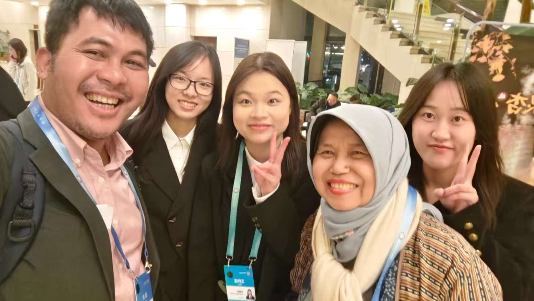 戴君宜同学、李嘉琪同学与印度尼西亚嘉宾合影