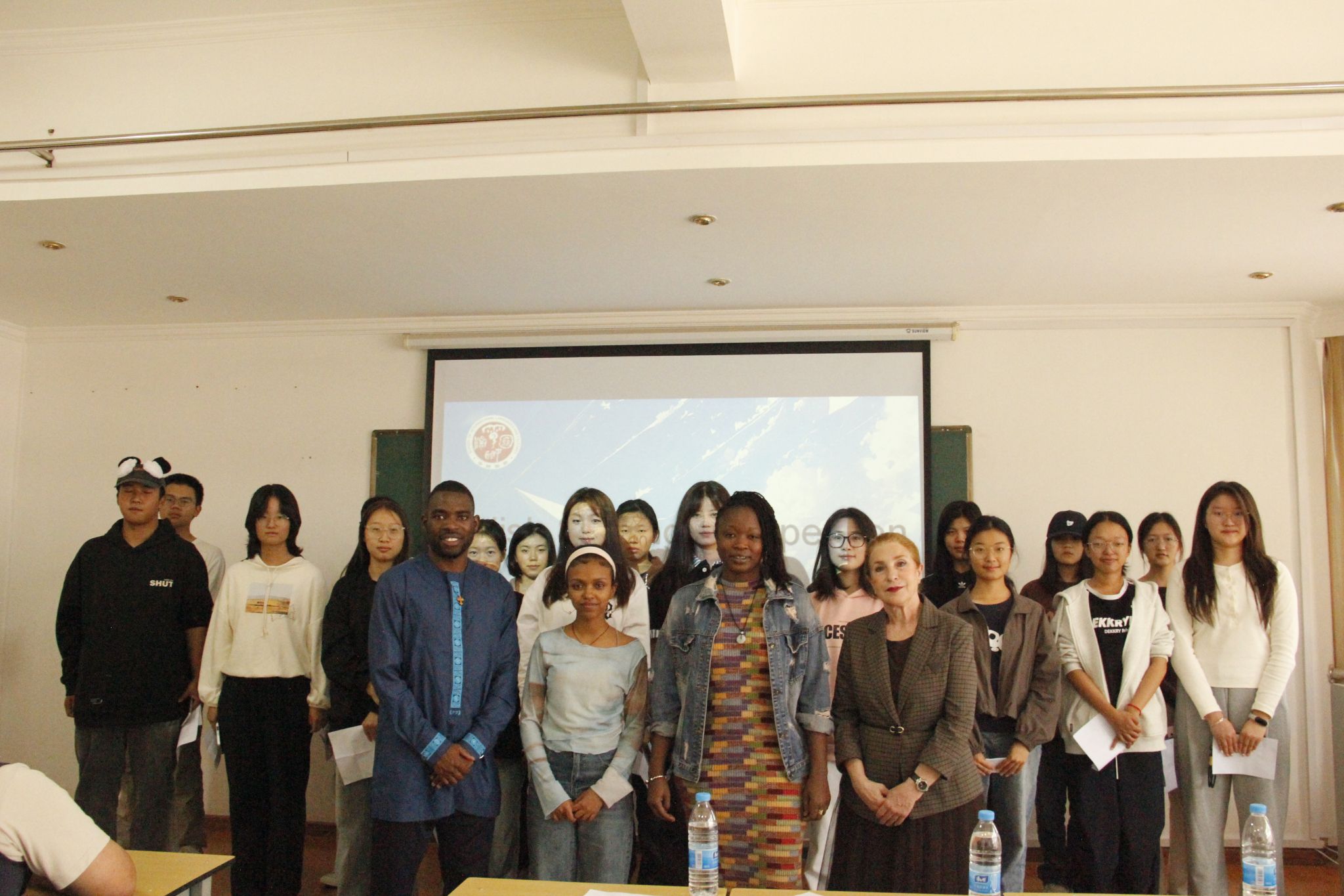 本次活动邀请外教Rouhe老师进行指导,并邀请了三位不同国家的留学生担任评委,确保评审的公平性与专业性。比赛尚未开始,教室内已座无虚席,现场氛围热烈高涨。随着轻快抒情的《Big Big World》旋律响起,比赛正式拉开帷幕。