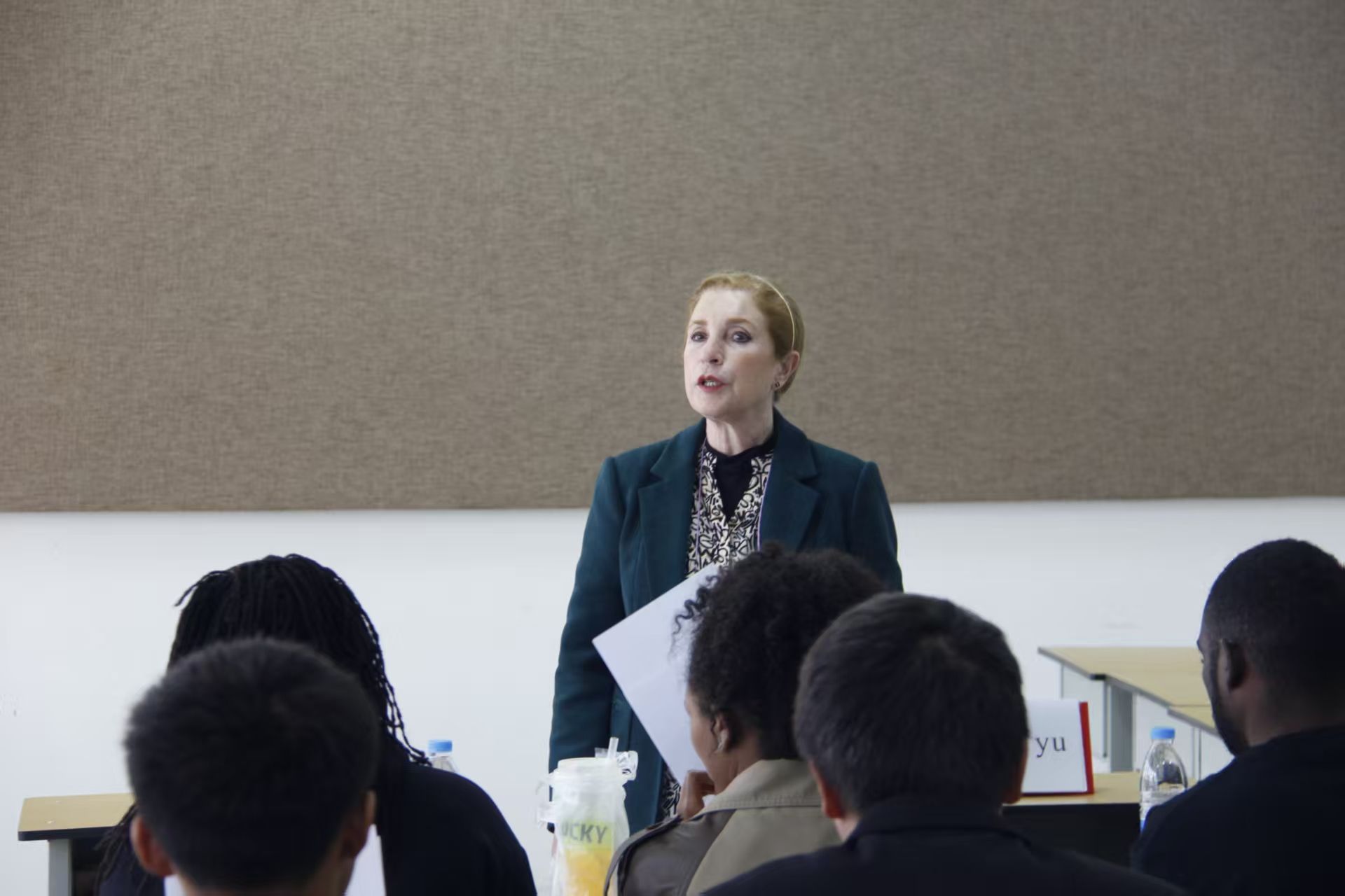 本次辩论赛邀请Rouhe老师为指导老师,三位留学生担任评委。此次辩题为“智能手机是否能提高工作效率”,赛事共设置八场对决,各参赛队伍围绕辩题展开多维度、深层次的激烈交锋。立论环节中,选手们以清晰严谨的英语句式构建完整观点框架,结合当下社会热点案例与现实场景,条理分明地阐述己方立场;驳论与自由辩论环节,双方选手反应敏捷、言辞犀利,既能精准捕捉对方论述中的逻辑漏洞展开有力反驳,又能以详实论据与严密推理巩固自身观点,充分展现出扎实的英语口语功底、出色的临场应变能力与默契的团队协作精神。