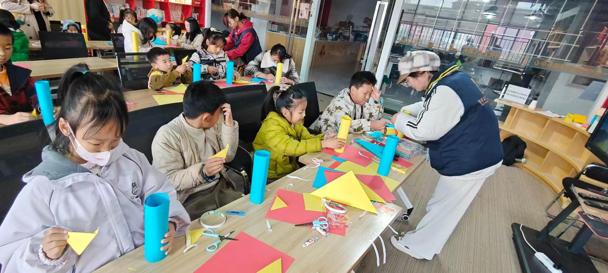 活动以航天知识分享拉开序幕。志愿者摒弃晦涩术语,用“航天员吃饭像‘抓泡泡’”等生动比喻,结合互动提问,将抽象太空知识具象化,迅速点燃孩子们的探索热情。随后的航天英文单词教学环节融入游戏元素,志愿者以“石头剪刀布”定奖惩——胜者获奶糖奖励,输者跟读单词也能得到小礼物。孩子们踊跃参与,在欢声笑语中轻松掌握相关词汇。最后的火箭制作环节,志愿者一对一悉心指导孩子们折纸、粘贴、组装。当看到亲手完成的作品时,孩子们的脸上都洋溢着自豪的笑容。