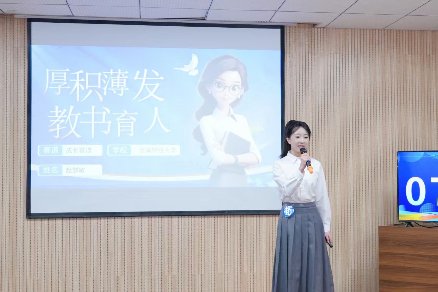 决赛现场,赵慧敏同学结合自身专业优势与职业理想,对规划内容进行详实阐述,逻辑清晰、亮点纷呈,展现出新时代大学生清晰的职业认知与昂扬的奋进姿态。经过评委专业评审与现场打分,最终,赵慧敏同学凭借兼具深度与可行性的规划方案,斩获校赛金奖。