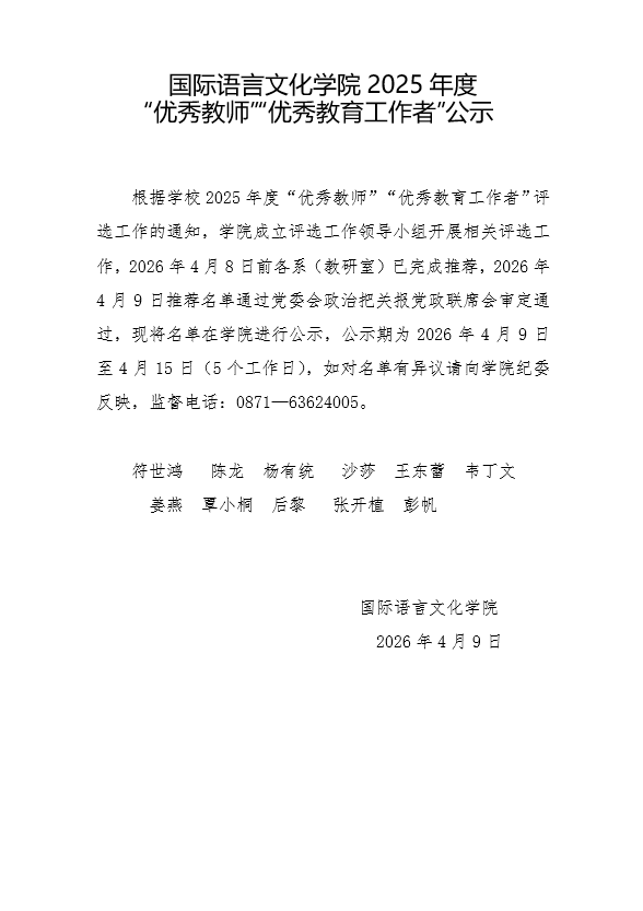 上一条:国际语言文化学院关于公布2026年硕士研究生招生考试英语笔译专业复试成绩及有关事项的通知